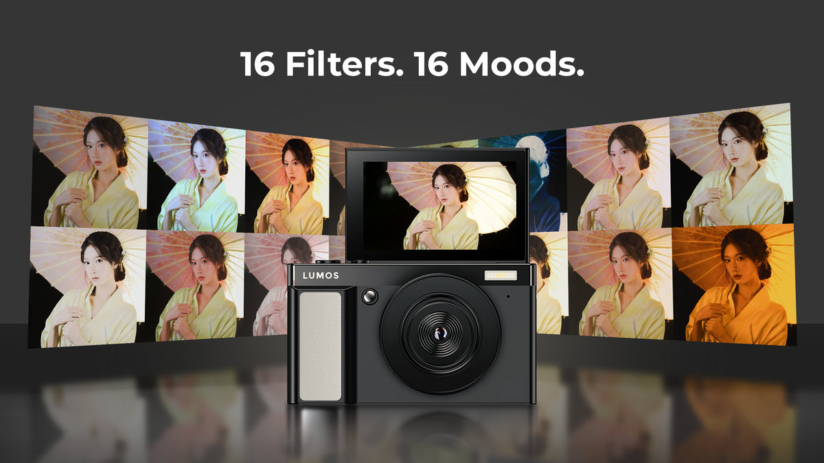 LUMOS EVOKE comes with 16 built-in filters like Retro Fade, Warm Vintage, High Contrast B&W, and Cinematic Cool. Add drama, warmth, or nostalgia to your photos with no editing apps required. Just shoot and style on the spot.